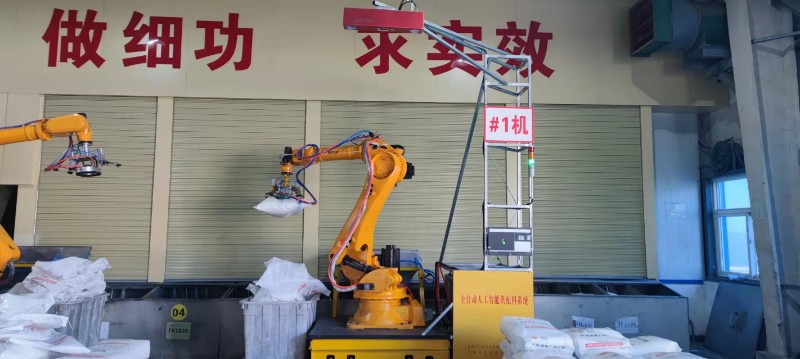 此項目是針對類似于蘭州中凱工貿有限責任公司包材廠提升生產效率而研發,項目一期具體研發八大系統:分別為物料自動抓取系統、破袋及回收系統、移動平臺自動定位系統、移動平臺自動操作系統、觸摸屏智能操作系統、3D視覺定位系統、緊急停車及安全保護系統、料位報警系統,實現兩臺工業機器人協作供料、優化工藝信息采集的目標。該系統利用3D視覺和工業機器人技術,完成料垛精準拆垛;實現物料精準放置對應料倉和定制化抓取數量;實現物料完成破袋入倉及物料傾倒干凈;實現廢料袋包裝袋回收;實現料倉料量檢測完成手動及自動供料模式;實現供料系統工業化信息監控和控制系統搭建。項目二期設計智能倉儲,自動輸料機以實現全程無人操作的全自動化生產車間,為后續MES系統(訂單式工業生產管理)做準備。