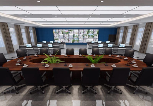 該項目采用先進的信息化技術和自動化控制技術作為項目建設的基礎,利用不間斷電源來保護市電的穩壓運行,在市電發生故障時不影響各系統的正常工作,利用可編程控制主機、定制化中控嵌入軟件和8寸無線觸摸屏完成了會議室所有電子單元的控制。會議室主要采用了高清會議終端和高清視頻會議攝像機連接到環縣各鄉鎮派出所系統,隨時可接通視頻會議,會議室可同時容納600余人,聯合作戰室利用多個拼接屏的方式完成環縣街道多個重點部位的監控,可接通省公安廳隨時實施聯合行動,給環縣公安局及縣委縣政府緊急會議的召開提供了極大的幫助和便利。
